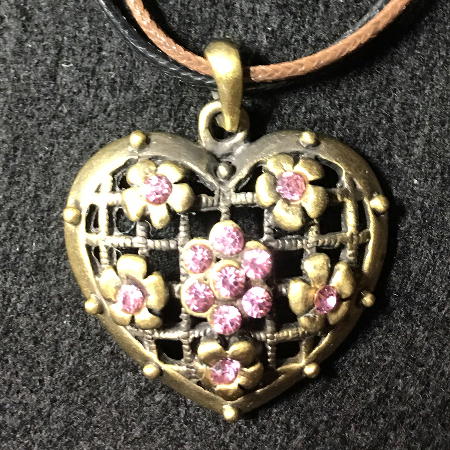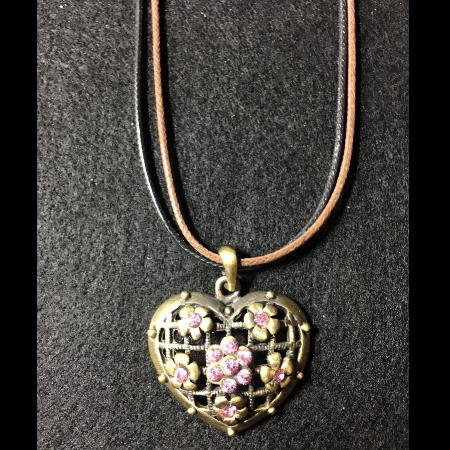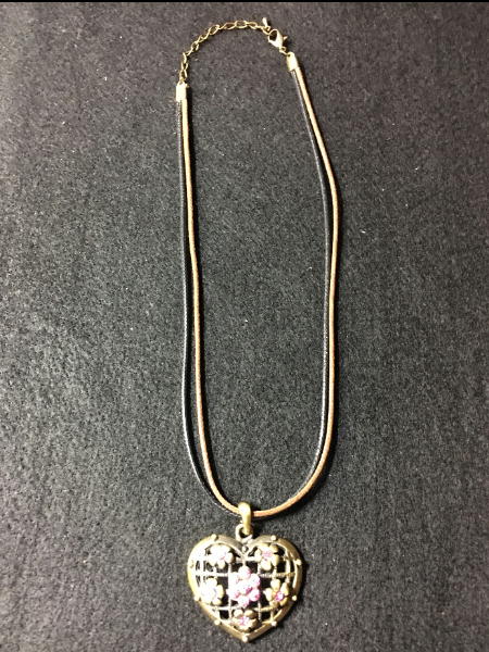 こちらは、彫金ペンダントトップをアンティーク風に仕上げたお洒落な革ひもネックレスです。