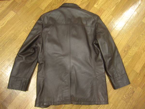 レザージャケットです。色はこげ茶です。 「PPFM」とあります。タグが切られており、革質はよく分かりません。サイズ表記Mです。実寸より判断下さい。肩幅約45.5cm、袖丈約58.5cm、着丈約72cm、身幅約50cmです。使用回数も少なく、きれいな状態のものだと思いますが、中古品に付き、神経質な方は入札をお控えください。ノークレーム・ノーリターンでお願いします。発送は、ヤフネコパックを予定しています。