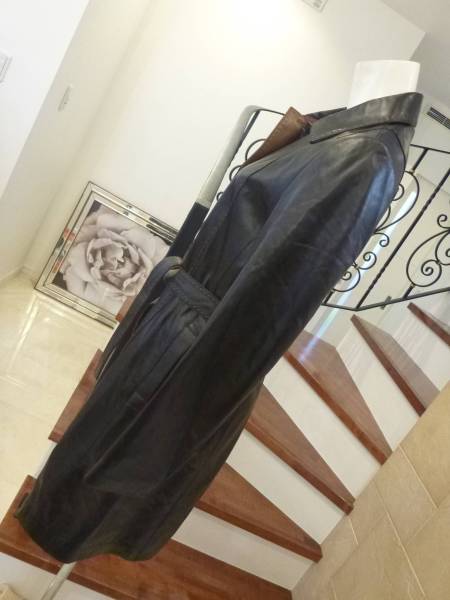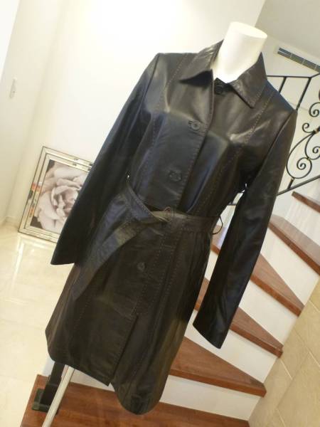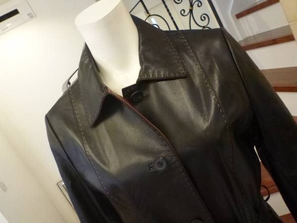 15万 美品 Tuvalu本革(鹿皮)黒×茶ステッチコート