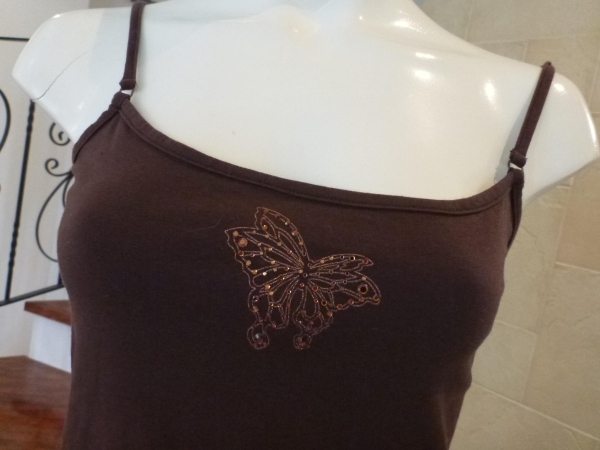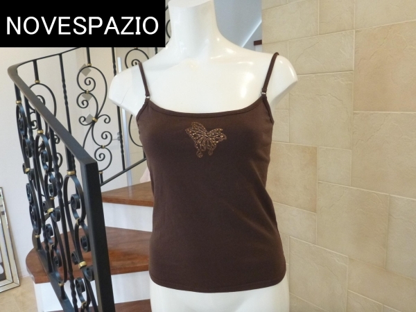 美品NOVESPAZIOノーベスパジオ 茶ブラウン 蝶バタフライ ビジューキャミソール 38 M相当