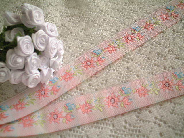| ご覧頂きありがとうございます。 新品1巻22.5m★淡いピンク色のお花が沢山刺繍された可愛らしいデザインです。 チロルリボンの巾は20mmになります。 お取り置きも承りますので、落札後に1度必ずご連絡くださいませ。 オンラインショップとの同梱も可能です。 | ||