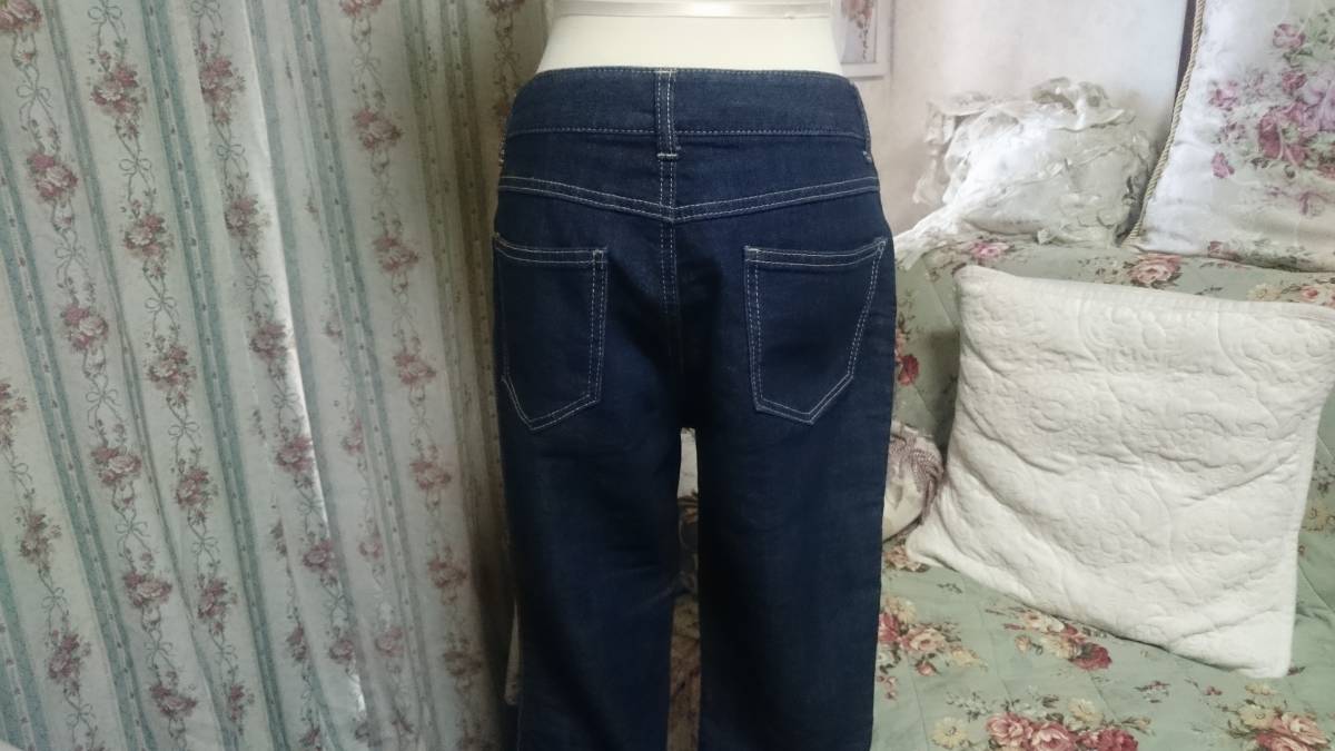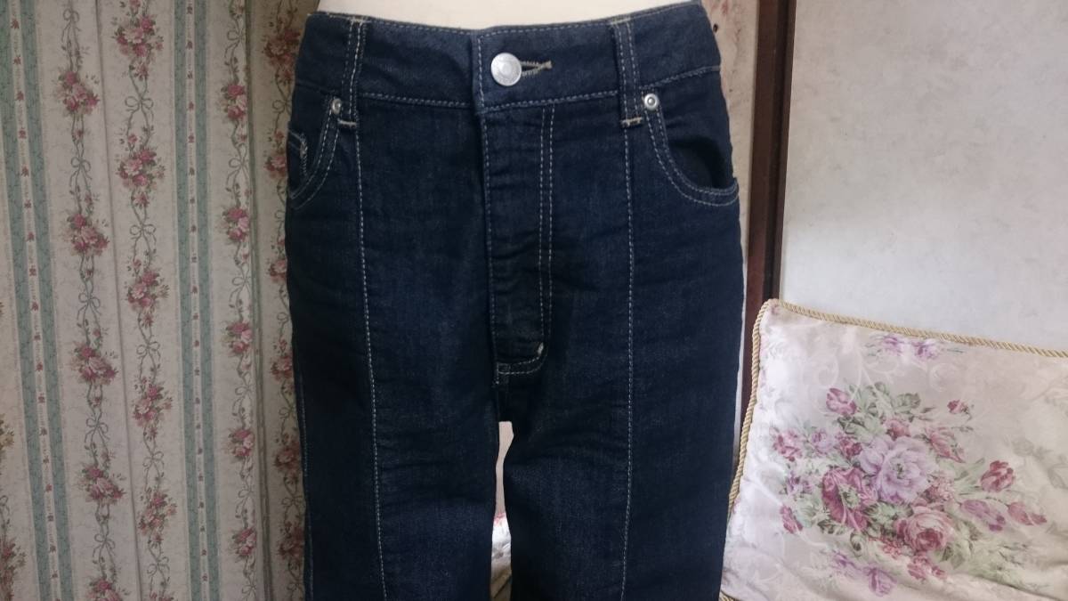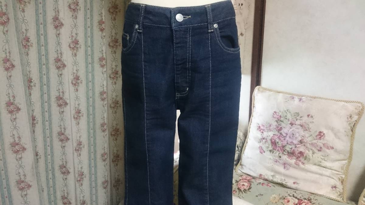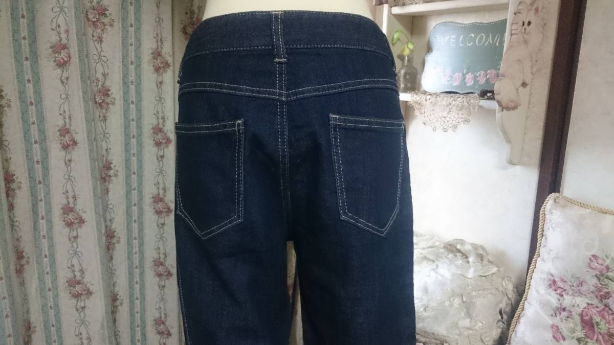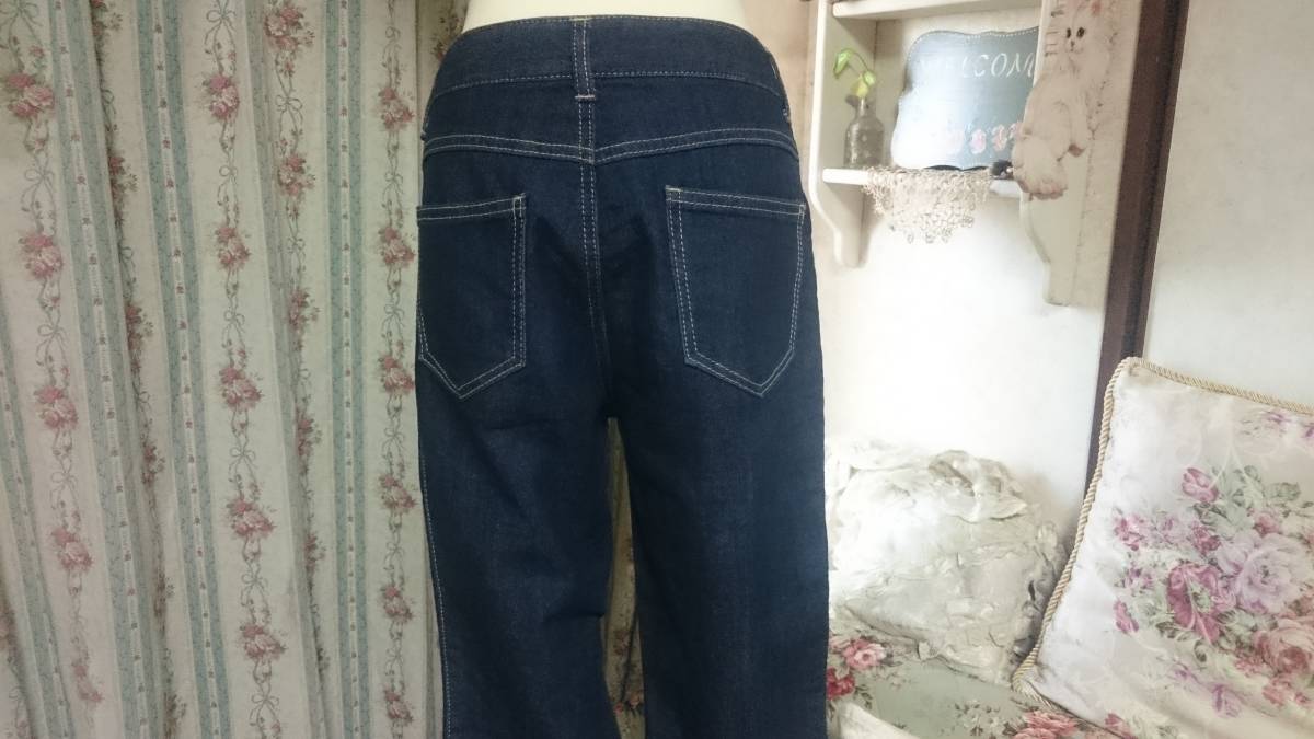 即決未使用ブルーデニム八分丈 センター縫い ターンバック