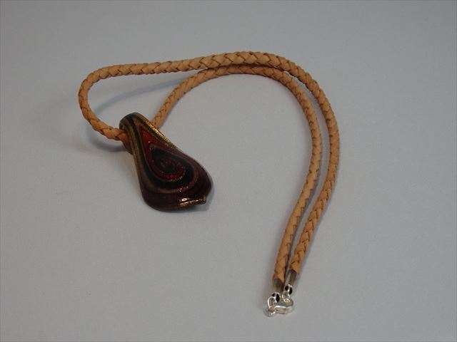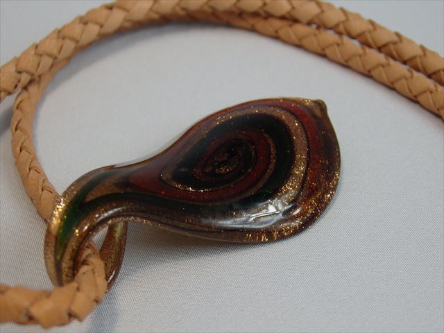 ガラス細工がとても綺麗なペンダントトップに牛革レザーチェーンのネックレスとのマッチングも素晴らしい。