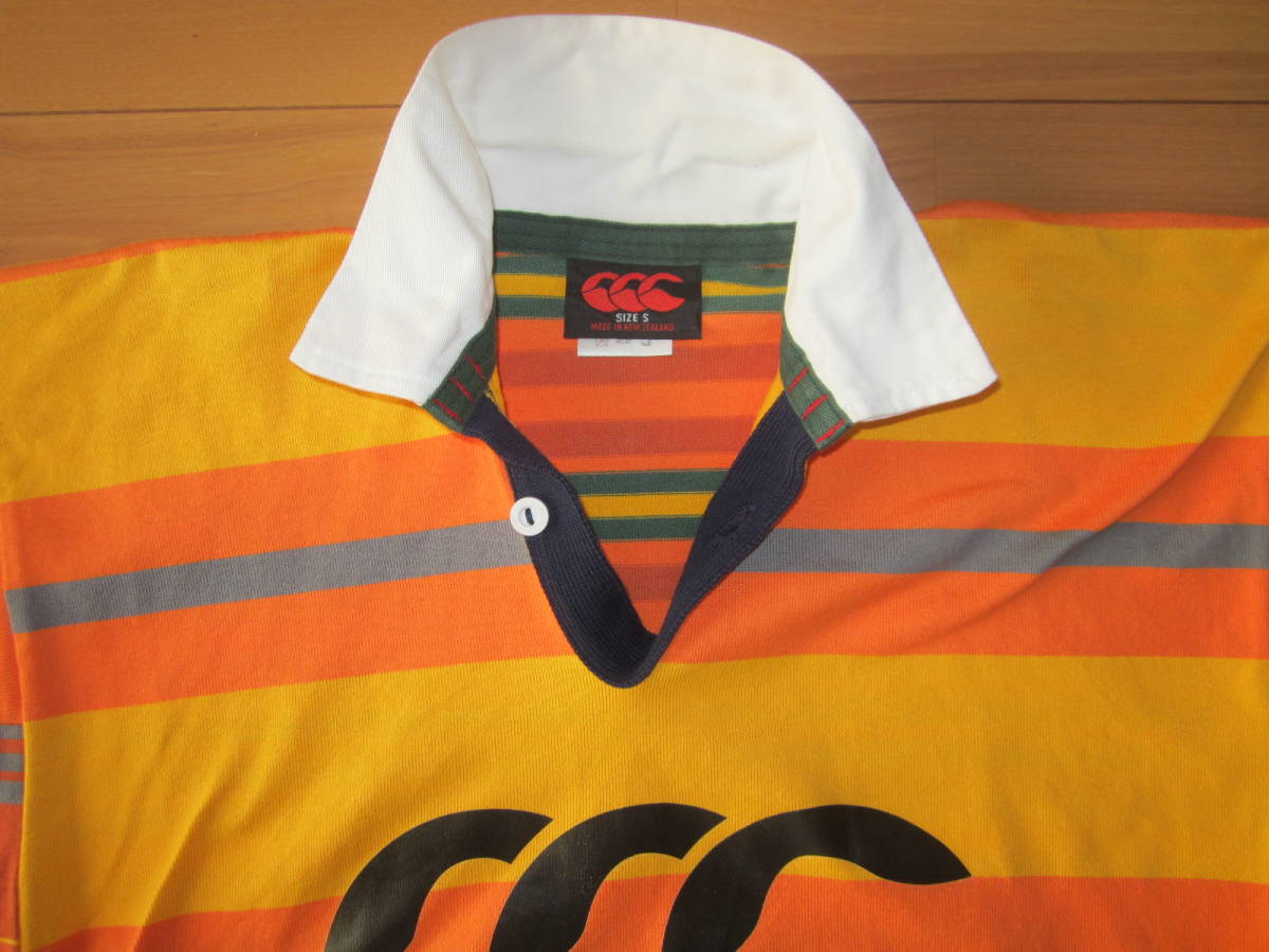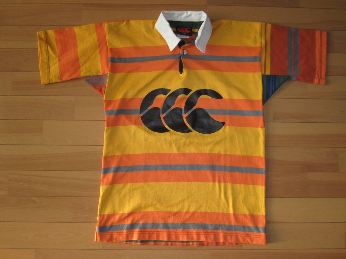 ★CCC CATERBURY 綿55/ポリエステル45 プリント&ボーダーラガーシャツ ニュージーランド製★橙黄sizeS★