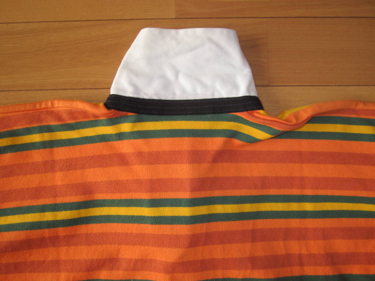 ラバー製1個ボタン、首周りが補強されたラグビージャージになってます。