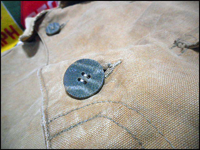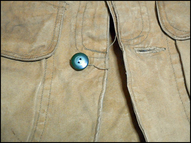 ボタンの交換、数カ所裂けや破れがあり、所々にシミ汚れやスレ、小傷が見られます。その他、USED相応の着用感があります。