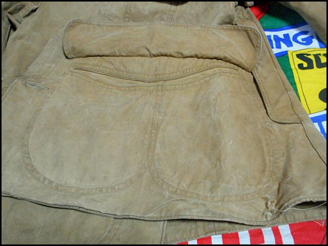 かなり古い年代のディティール満載の1着で、これからのシーズンにもおすすめな1920年代頃のビンテージAラインシルエットブラウンダックハンティングジャケットです。