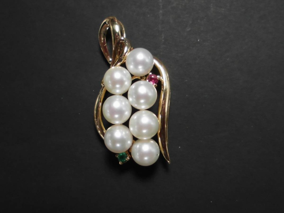 K18天然パール7個付きペンダントトップ