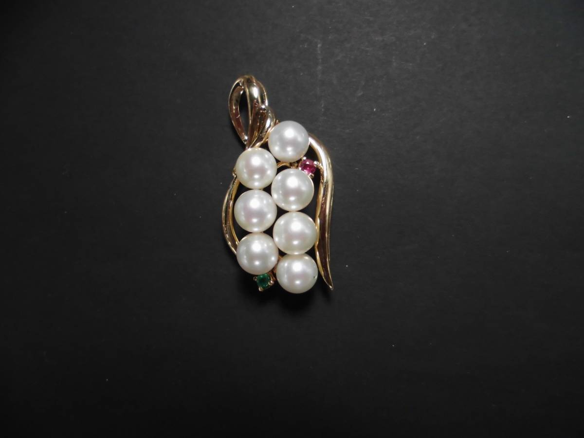 K18 天然パール7個付きペンダント トップ