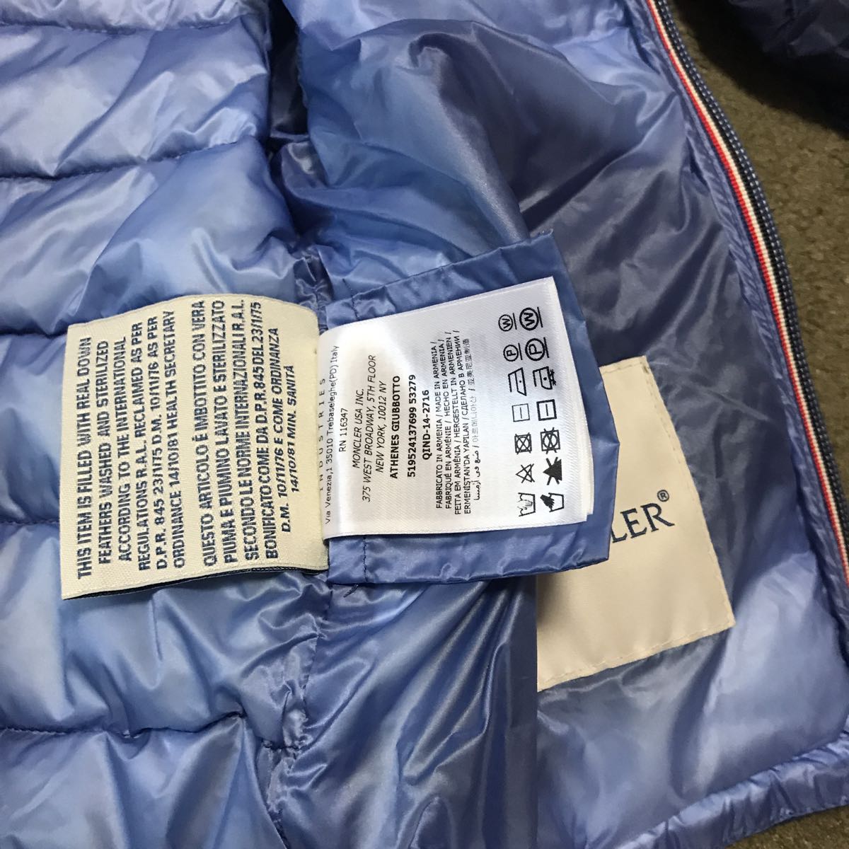 数回着用 モンクレール キッズダウンジャケット4ageです。実寸は肩幅29、身幅36、着丈37、脇下袖丈30bmです。保存バッグも付属しています。ロンドンのモンクレール 直営店購入です。探していた方、この機会に如何ですか。
