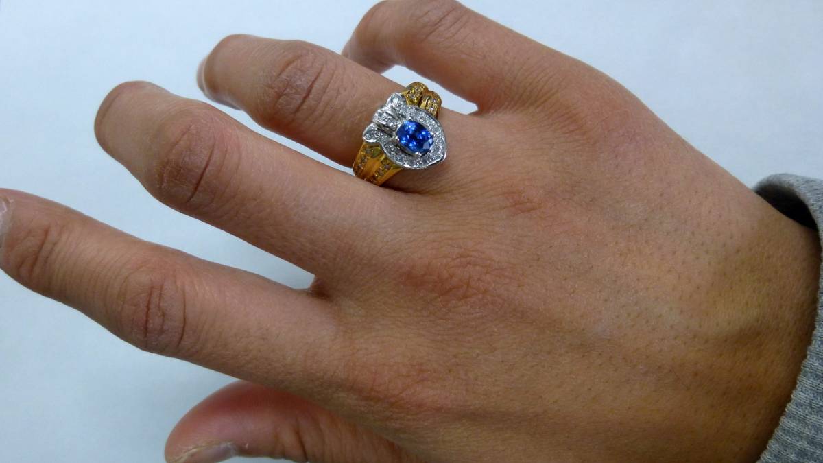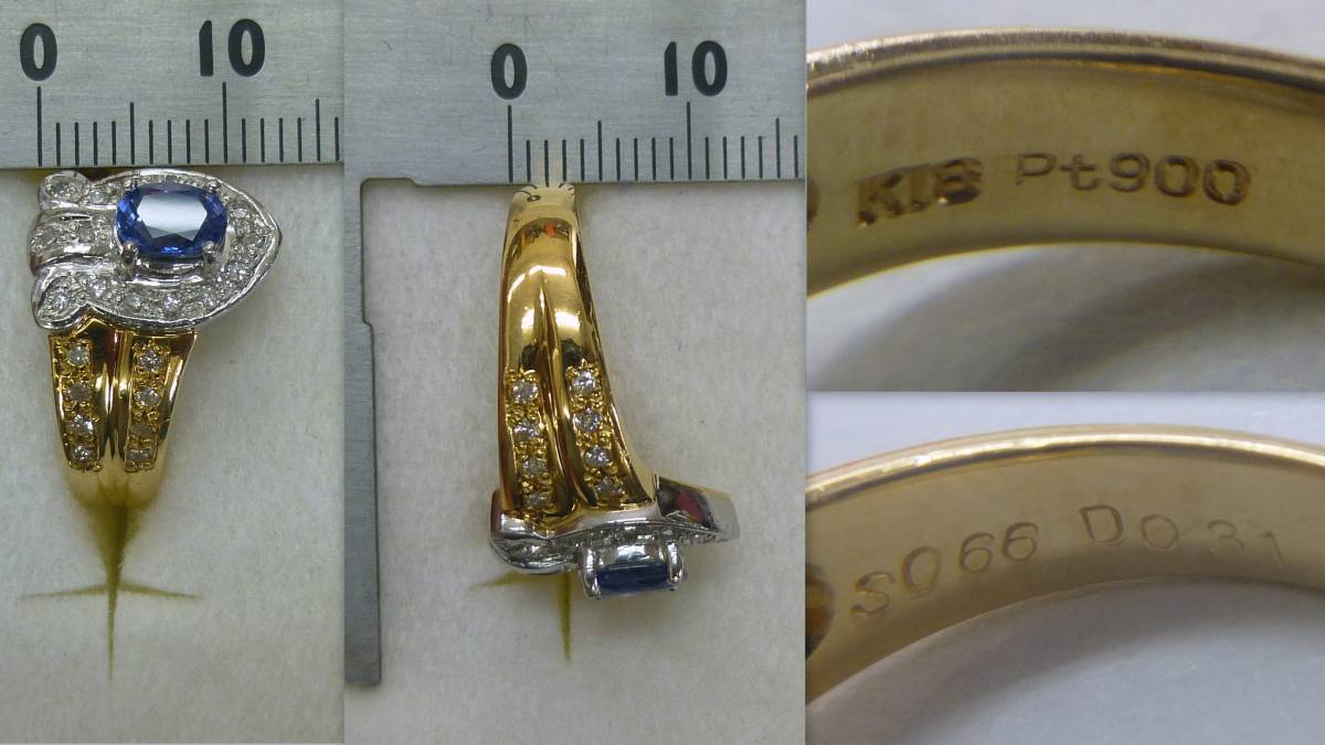12号 pt900 k18 サファイア 0.66ct ダイヤ 0.31ct リング プラチナ900 18金 指輪