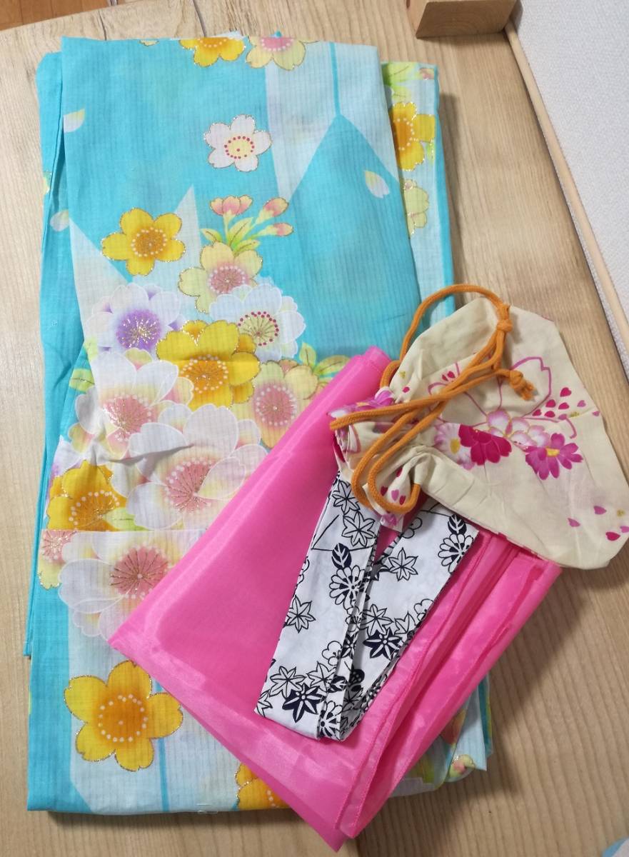 | きもの 浴衣 水色 桜 身丈165 | |||