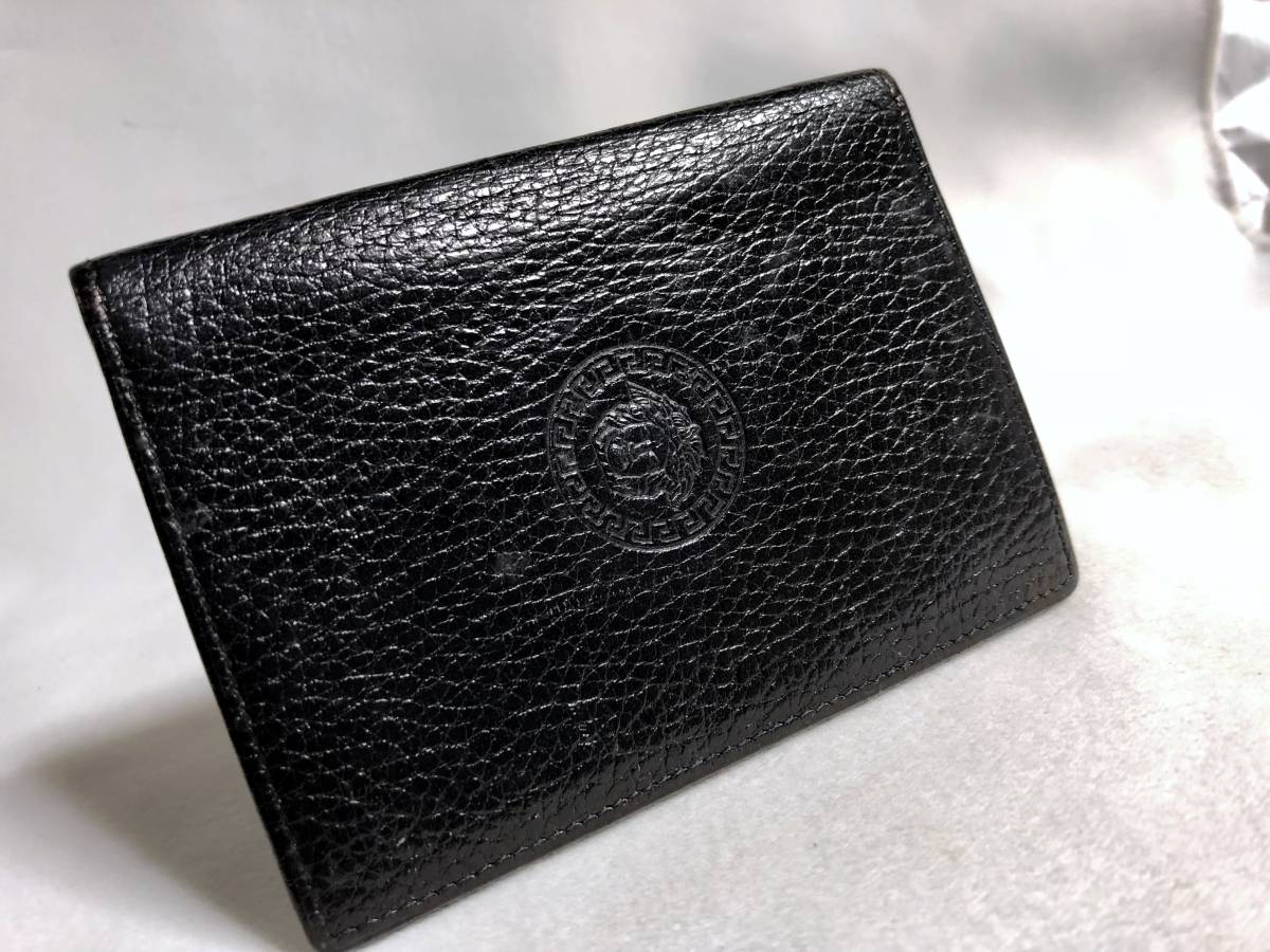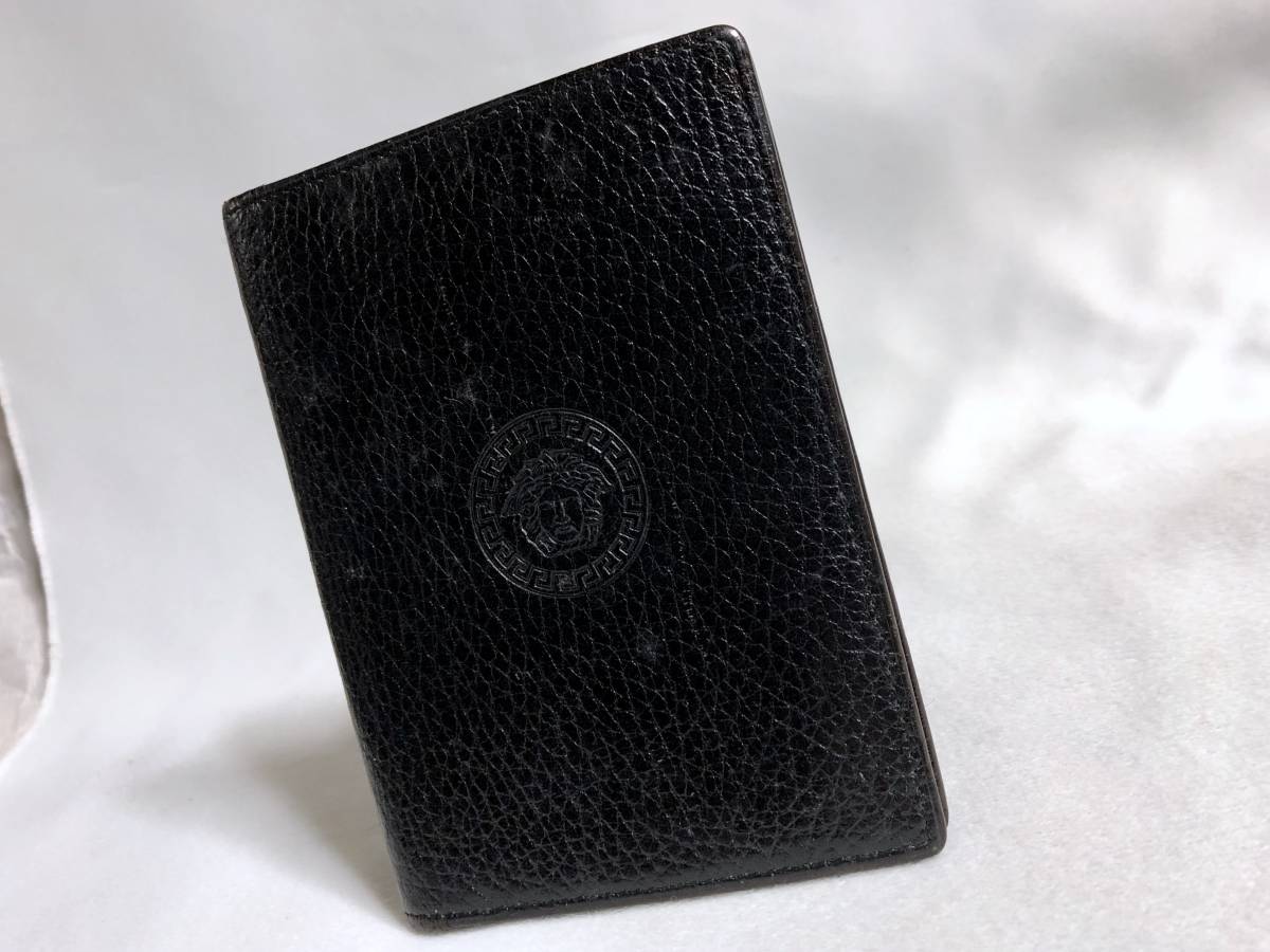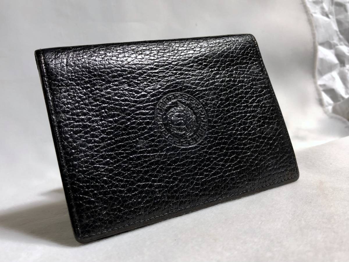 正規美 ヴェルサーチVERSACE メデューサロゴカードケース黒 名刺入れ パスケース ブラックレザー×オーナメントロゴ ヴィンテージモデル☆
