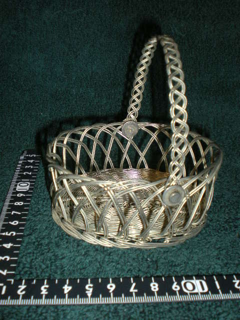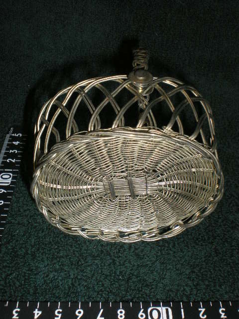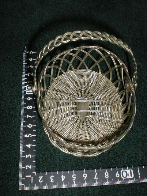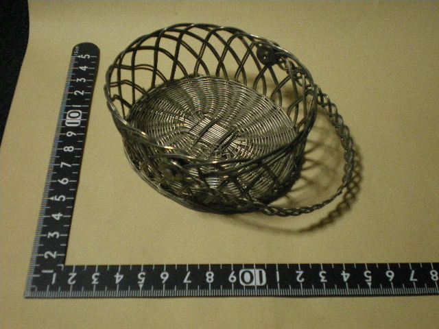珍品フリマ・竹・籐] 全金属製 取っ手付き かご 物入れ 大きさ:長径 10cm 短径9cm カゴ本体の高さ 4.5cm 全高 10.5cm [送料無料]