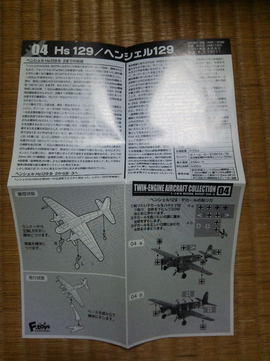 エフトイズ 双発機コレクション 04-a 1/144 Hs 129 ヘンシェル129