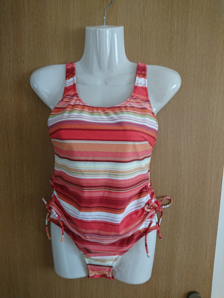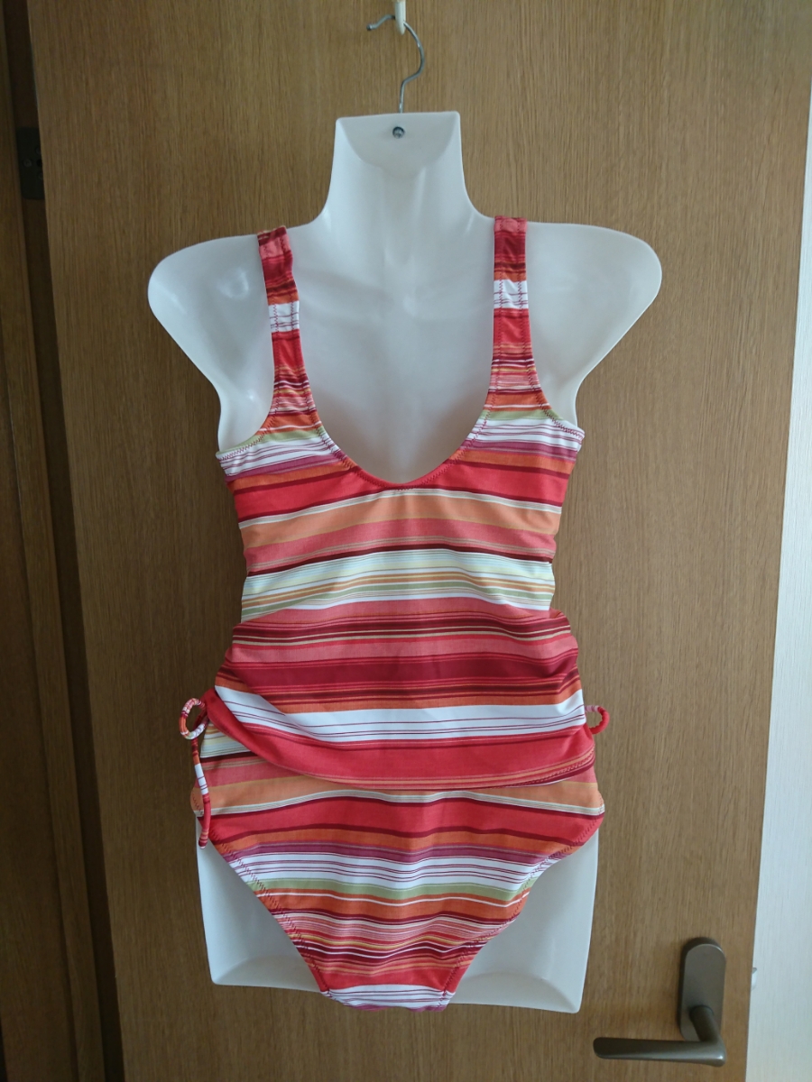 ボーダー柄の重ね着風ワンピース水着です