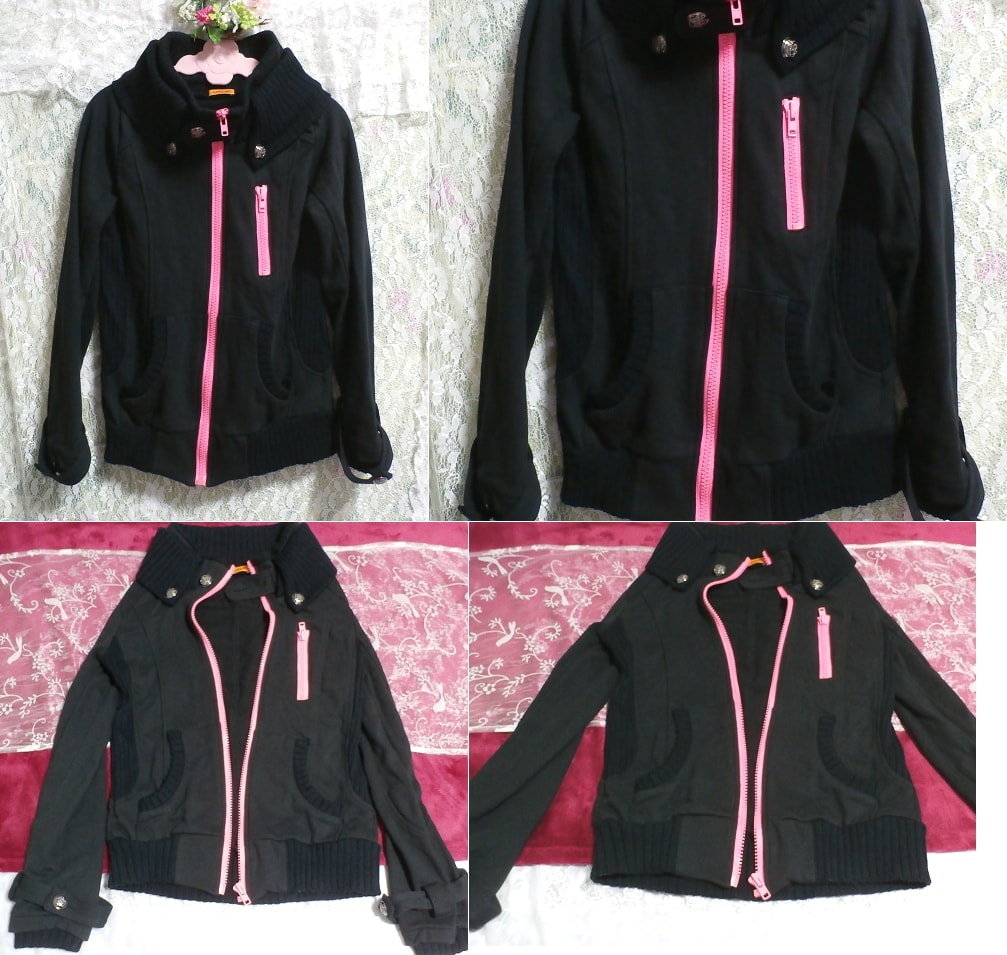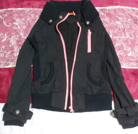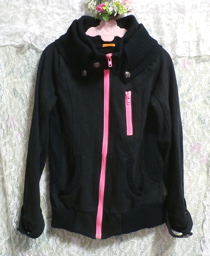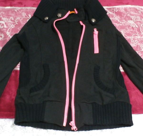 綿100%黒色ピンクチャックカーディガン/アウター Cotton 100% black pink chuck cardigan/outer