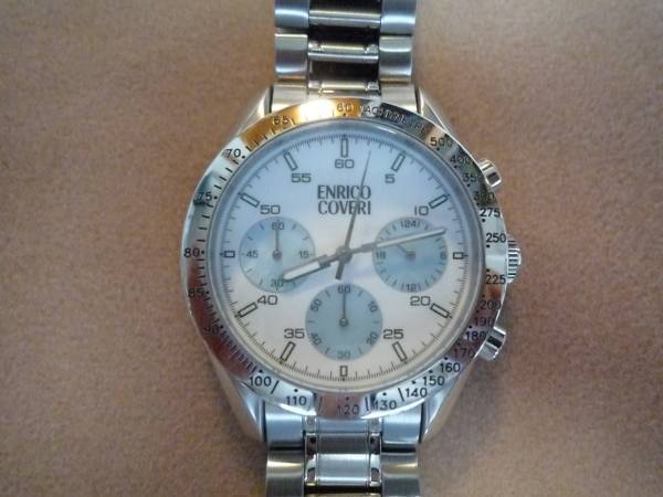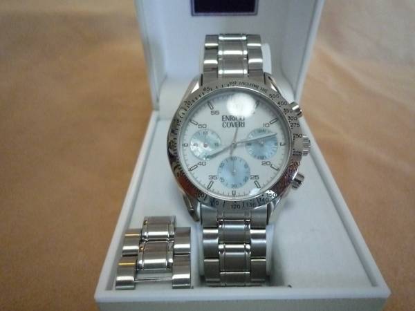 時計コレクションからの放出です。 ブランド エンリココベリ ・1973年に創立したイタリアのアパレルから始まった。 ・創立者はエンリコ・コベリ(Enrico COVERI)。 ・1973年、Touche by Enrico Coveriをスタート。 ・1977年、パリでファーストコレクションを発表。 商品 シルバー+ホワイトのフェースにブルー・シェルの小窓が爽やかな印象を残すアフター&ビジネス両用のスポーティ&エレガンスなクロノ・ウォッチです。 ◆コレクション共通項◆ 購入後は基本的に自宅のコレクションケースに入れて鑑賞していた物です。 定期的にオートマ等の機械式時計については3ケ月に1度巻き上げて稼動を確認。 クォーツ式時計については半年に一度電池状態を確認しておりました。 ほとんどの時計が実用使用0回、実質的には新品とお考えください。 ただし、購入時にメタルバンドは私の手首に合わせて購入店でサイズ調整をしていたため、余りコマを含めてフルコマの状態。 レザー等の非メタルバンドは鑑賞用ケースの止まり木に掛けていた際に付いたクセが発生している可能性がございます。 またクォーツ式時計については電池切れの際、自宅にて電池交換を実施した際、裏蓋に若干の開封傷がある場合あり。 基本的に購入時の専用ケースは付属しておりますが、紙箱・ビニル等の箱装飾には丁寧に自宅保管しておりましたが、経年劣化が出ておりますのでオマケとお考えください。 上記のコレクション品ですが、その分、格安出品いたしますのでよろしくお願いいたします。 ◆個別商品の状態◆ ・購入時コマ調整後はコレクションケースに入ったままの状態~新品 ・腕まわり180mm+18mm(はずれコマ2個あり~フルコマです) 添付 ・ギャランティ ・取説 ・専用箱~経年劣化と開閉部に破損あり~完全なオマケとお考えください。 ●その他 ・ご不明な点がある場合は必ず入札前に質問欄より質問をしてご理解いただいた方のみ入札願います。 ・落札後のクレーム、返品は一切なしでお願いいたします。 ・事前質問もなく落札後、執拗な商品や入金方法および発送方法についての質問・変更依頼は固くお断りいたします。 ・説明の意味が理解できない方もお断りいたします。 ・美品・極美・新同等はあくまで出品者の主観です、写真だけの判断で恐縮ですが、納得の上で入札願います。 ・新品でも写真撮影時に開梱もしくは自宅保管による微細なスレ等がある場合がありますのでご承知おき願います。 ・完全無欠な新品をお求めの方はご遠慮願います。 ●ご入金方法について ①Yahoo!かんたん決済 ●送料について クロネコヤマト宅急便80サイズとさせていただきます。 ●電池について 出品時には稼働を確認しておりますが現状は【電池切れ】状態とお考え下さい。(出品時は間違いなく稼動を確認しております)が、まことに勝手ながら落札時点における電池保証はできかねず、落札時点における電池状態による現状渡しとさせていただきます~ご承知置き願います。 *当方にて電池交換をご希望の方 ・+1500円にて【新品電池】への交換を承りますので落札後に一報願います(入金確認後~出荷までの通常手番~1日~2日に+数日頂戴いたします。 |