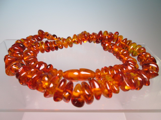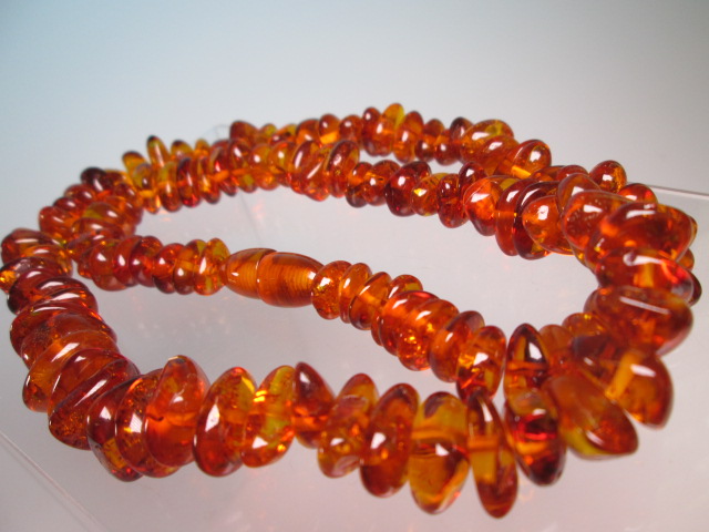 ☆天然琥珀 変形粒のロングネックレス