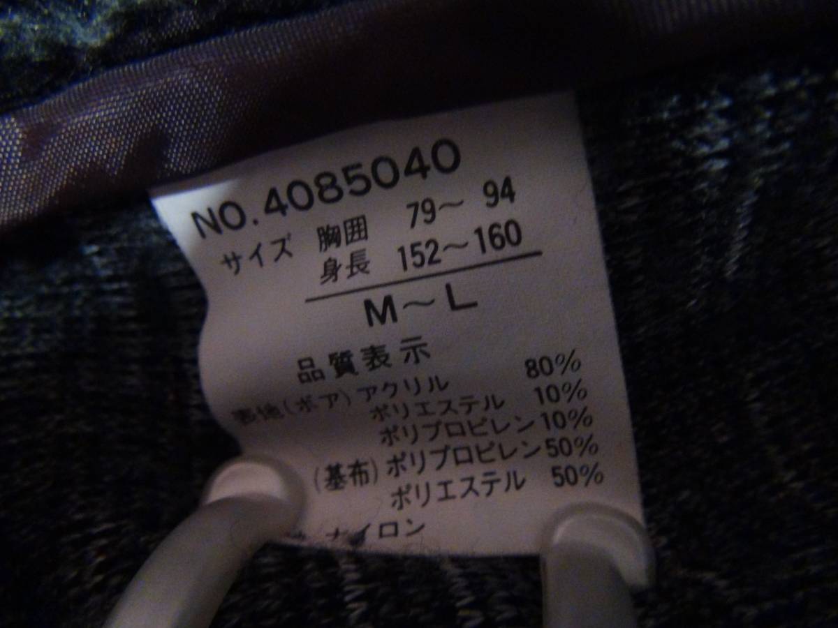 素材は表地アクリル80、ポリエステル10ポリプロビレン10、