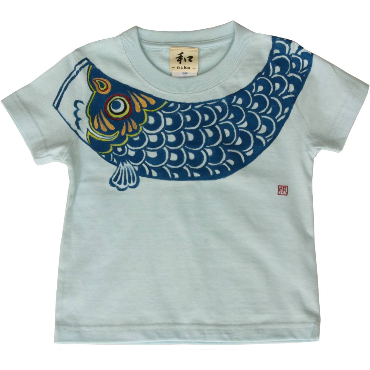 ハンドメイド 手描きTシャツ キッズTシャツ 鯉のぼり柄Tシャツ 手描きで描いた、こいのぼりのTシャツ ナチュラル | |||