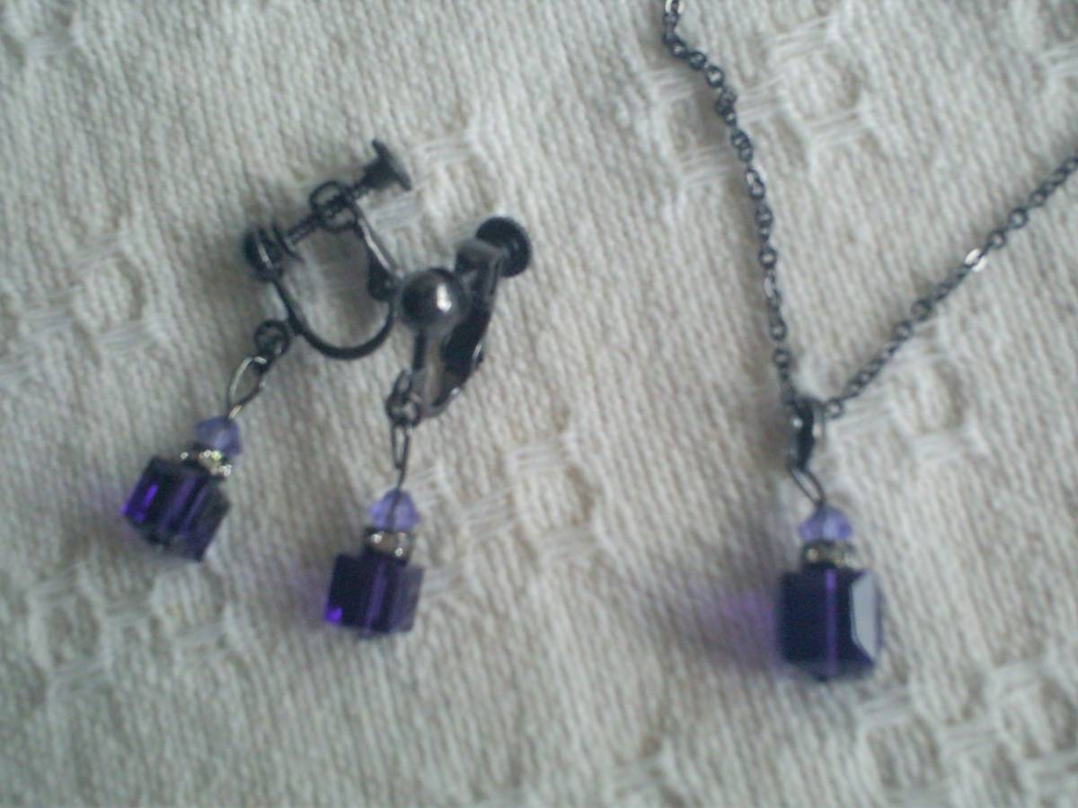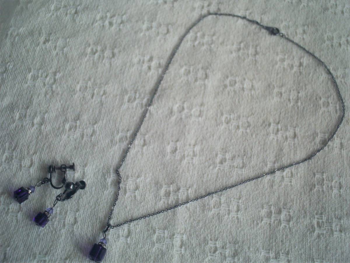 ★★★★ハンドメイド クリスタル ガラス使用 香水瓶モチーフ ペンダント&イヤリングセット 紫 新品★ ★★★★★ | |||