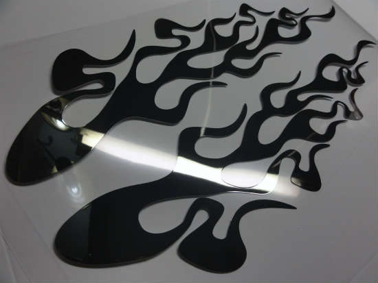 切り抜きタイプの鏡面ファイヤーパターンステッカーです。風雨はもちろん紫外線・海水にも強いステッカーで、屋外で5年の耐久性があります。(http://www.be-sticker.com/では他のステッカーもご覧いただけます)