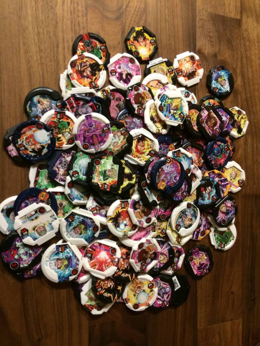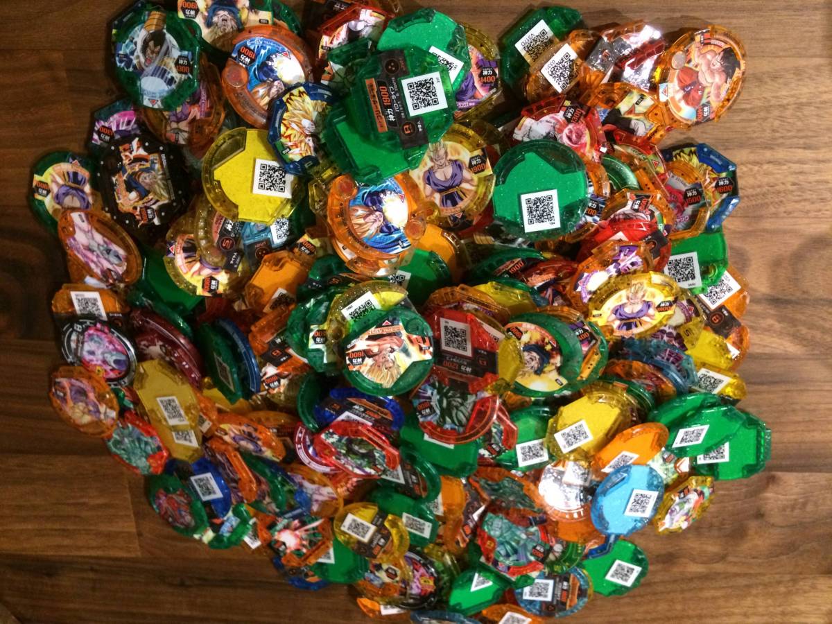 商品はドラゴンボール ディスクロスの多数、ゴッドディスクロス18枚・ゴールドディスクロス37枚・ライジングディスクロス12枚・その他お賽銭使用385枚の合計442枚の中古品です。当方遊んでコレクションとして保管していたものになります。
