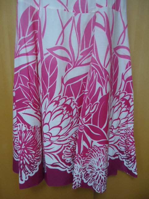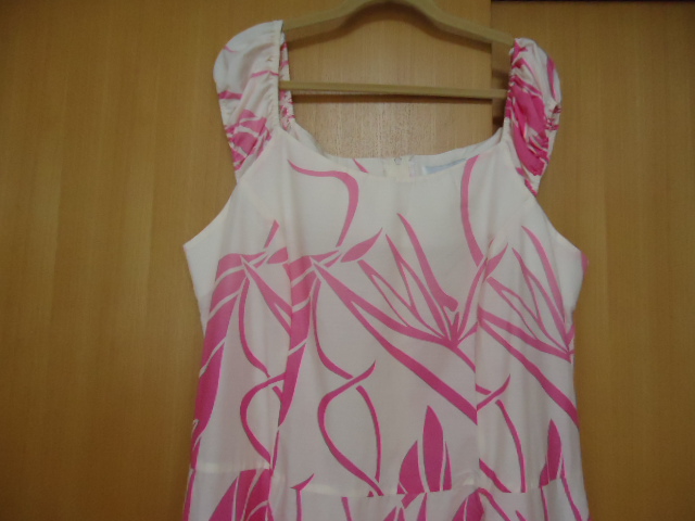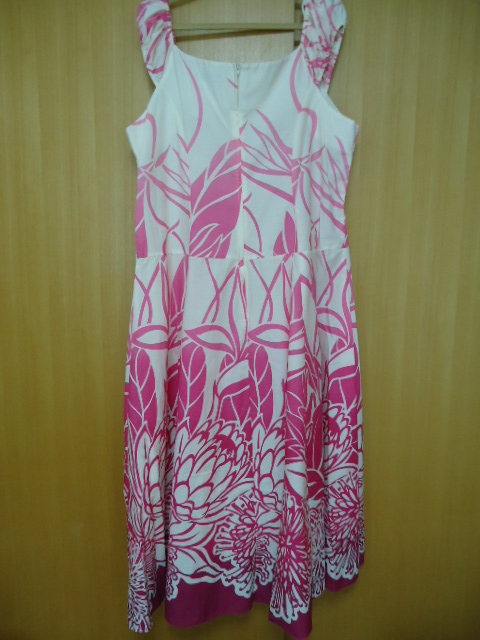 ハワイにて、USED物として、購入しました。T&L MUU MUU FACTORY社製。コットン35%・ポリエステル65%混合素材。カラーは、白色地に、ピンク・赤パープル色花柄です。ハワイ製。後ろファスナー・襟周り・袖口ゴムあります。サイズ表示は、XLですが、平置き実寸を重視して下さい。なお、当商品のサイズ表示は、全てUSAサイズです。なお、少々誤差は、ご了承下さい。肩幅約38センチ・身幅(脇の下)約55センチ・丈約140センチです。目立ったダメージありませんが、USED物なので、古着に、ご理解のある方・24時間以内に、お手続き入力後、期限内にかんたん決済、出来る方のみ、ご入札をお願い致します。この商品は、1点物です。 ※※発送方法・送料は、レターパックプラス郵便(追跡可能・手渡し配達・補償無し)ですと、600円又は、ゆうパック送料着払い便(持ち込み割引有り・追跡可能・手渡し配達・補償有り・かんたん決済時は、送料0円ですが、送料のみ到着時支払い)です。※※ ☆★★★★★☆送料は、変わりますが、何点でも、同梱包可能です。数点落札されましたら、まとめて取引を、選択お願いします。☆★★★★★☆