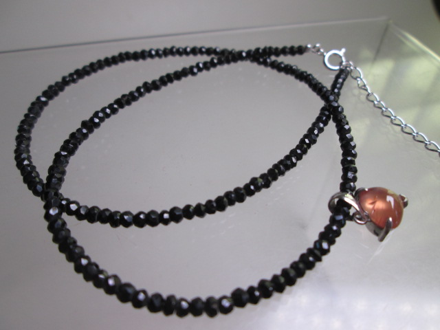 ☆K18 ピンク色ペンダント付ブラックスピネル ネックレス 新健勝苑栞付