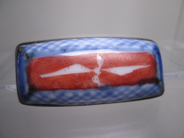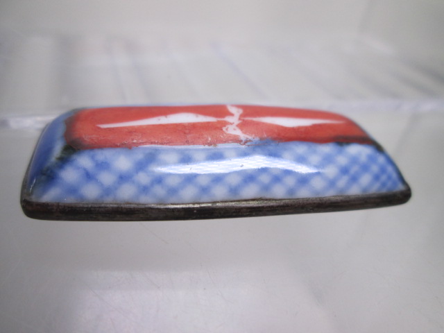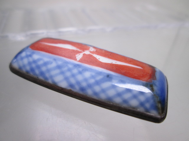 【江月】人間国宝 近藤悠三造 赤絵染付花紋の帯留め