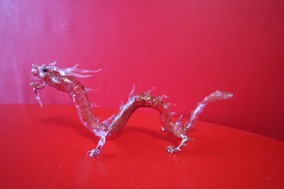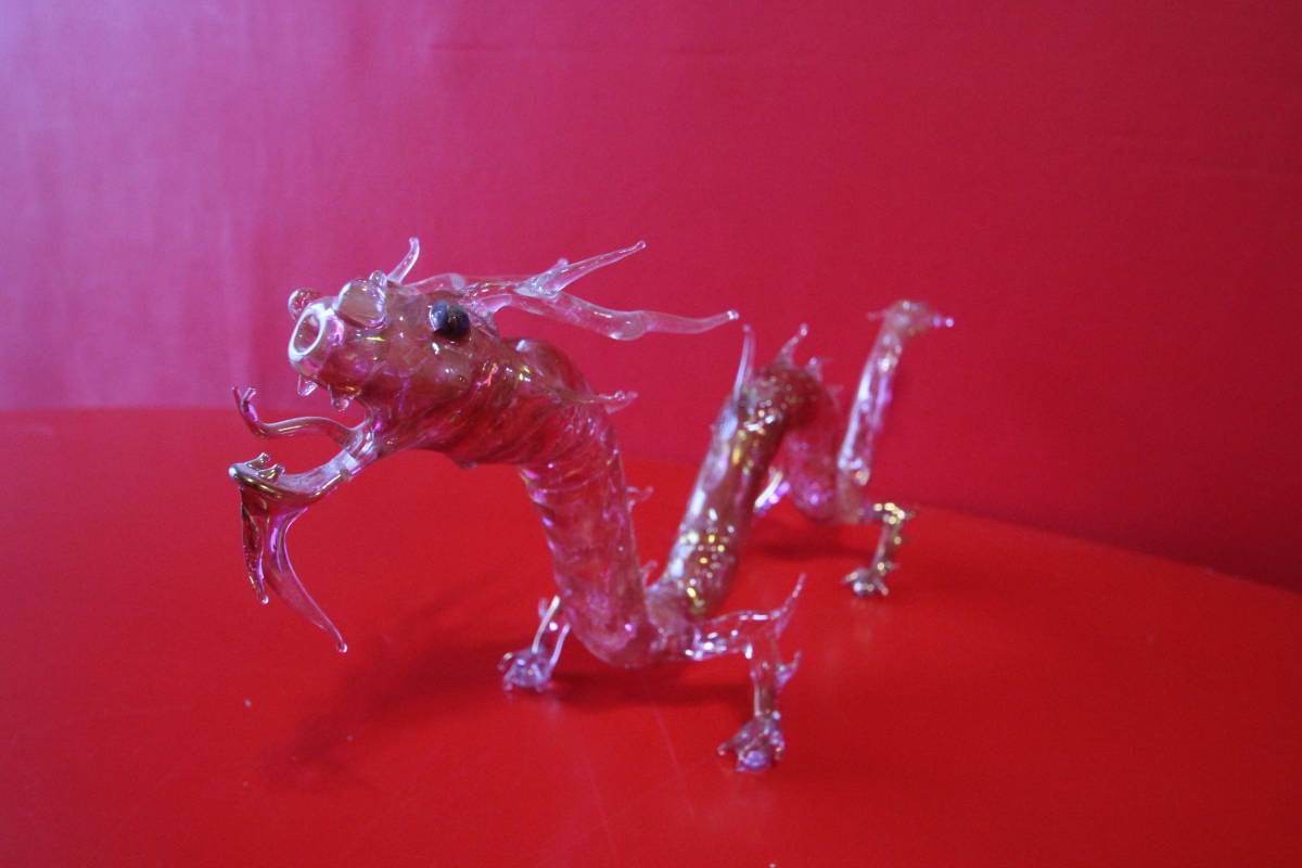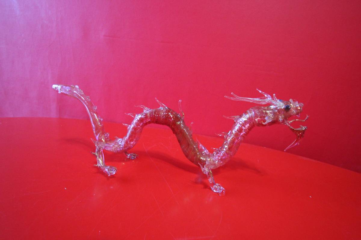 金彩、アムステルダム グラスパイプ 龍 ドラゴン 西洋ガラス工芸、rouge rosso red  H93