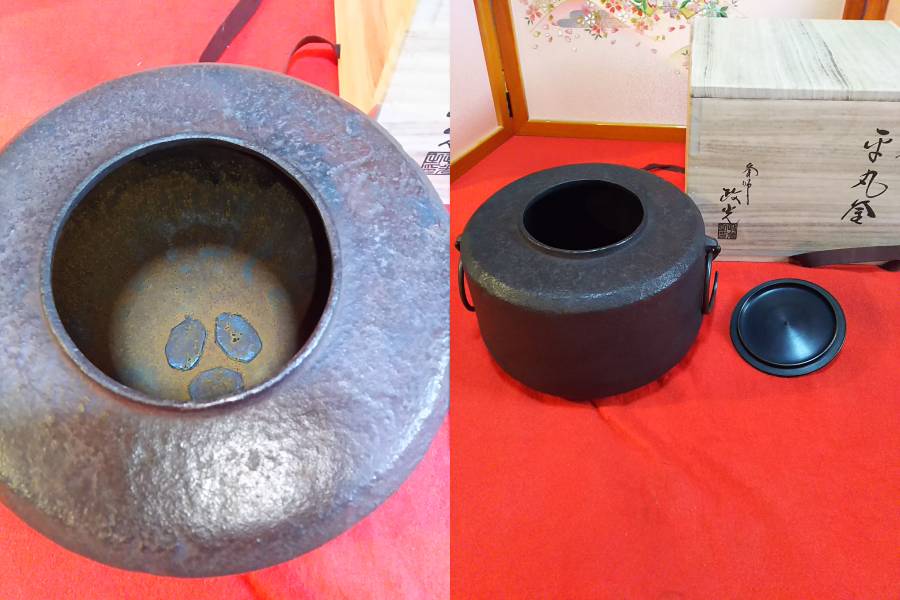 (鳥羽庵)うぶだし骨董茶道具釜師政光平丸釜(共箱付) 商品サイズ 横幅26センチ 高さ17センチ 重量約5キロ 商品説明、状態共箱付使用頻度の少ない極上品です。勿論漏れも御座いません。木象嵌入り。 詳しくは、写真参照でお願いします。 骨董品につきノンクレームノンリターンでお願いします。 発送は、ゆうパック140サイズにて発送いたします。 落札後48時間以内で連絡できる方4日以内で入金できる方入札待ってます.