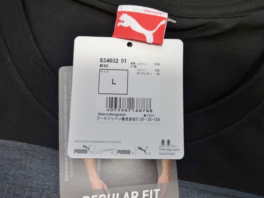 新品 PUMA ドライTシャツ【 身幅 約 100 cm 】L プーマ 綿100 CLOCK WORK 黒