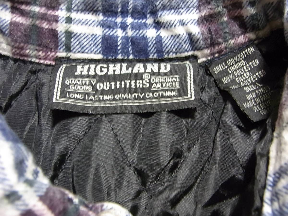即決!USA古着●HIGHLANDチェックCPOシャツジャケットL!ヴィンテージアメカジ!アメリカで買ってきましたユーズドの鮮やかなチェックCPOシャツジャケットです。キルティングの裏地付きですので防寒性にも優れています。カラーは写真を参考にして下さい。表記サイズLで、着丈(後ろ)約78cm、身幅約62cmです。素人採寸ですので多少の誤差はご了承お願い致します。状態は古着ですので、ある程度の着用感あります。特別目立つキズ、よごれはありませんが、あくまで古着として考えてください。古着にご理解のある方の入札お願いします。定形外郵便(規格外・700円)、ゆうパック(80サイズ)または、特約ゆうパック(通常より結構割安です、詳しくは自己紹介をご覧下さい)での発送になります。他にもいろいろ出品しています。よろしくお願いします。