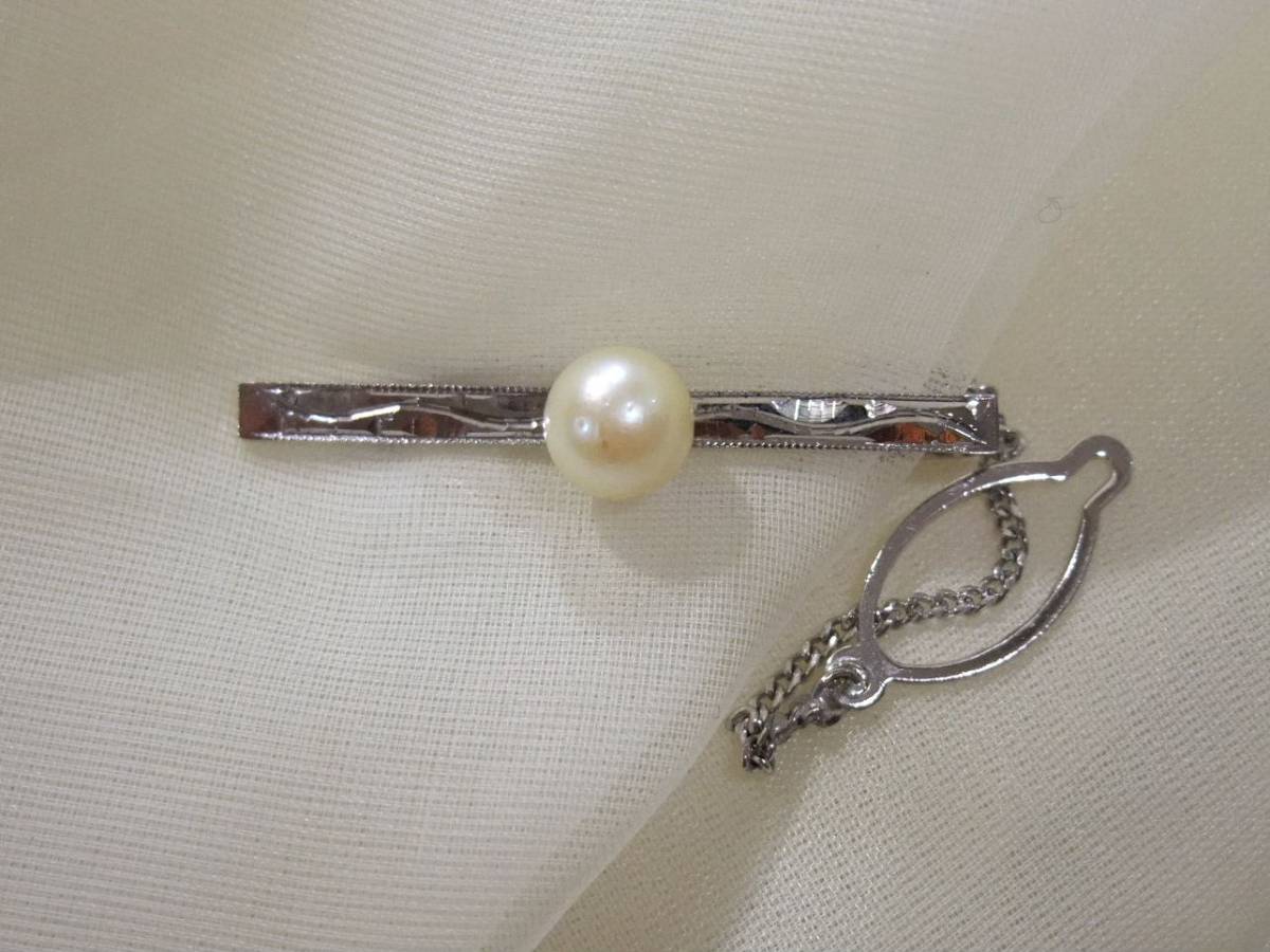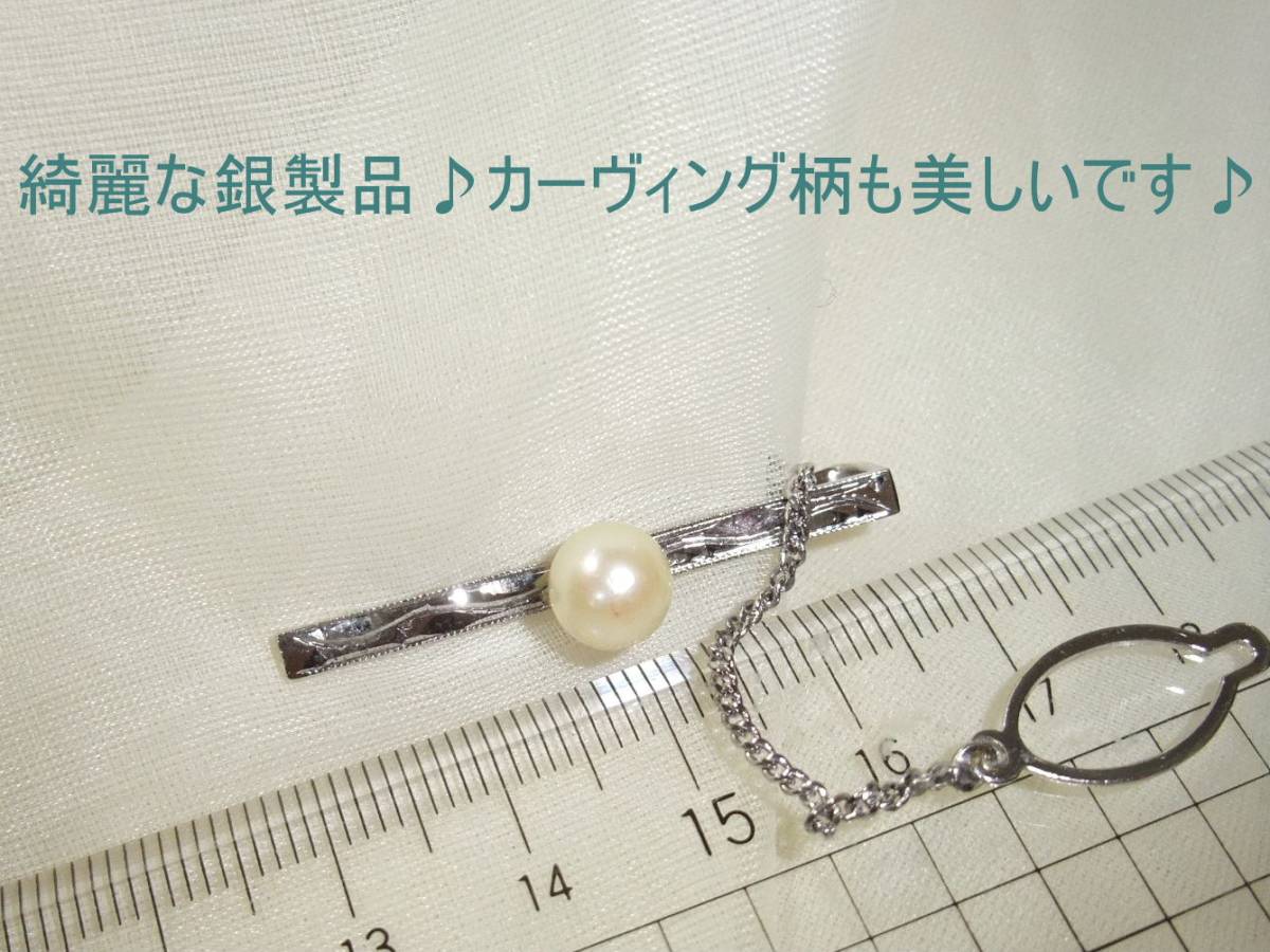 綺麗国産アコヤ真珠本真珠パール付レトロ♪シルバー製銀製品Silverミニピンタイバーネクタイピン♪レトロビンテージちょい悪親父系☆74②