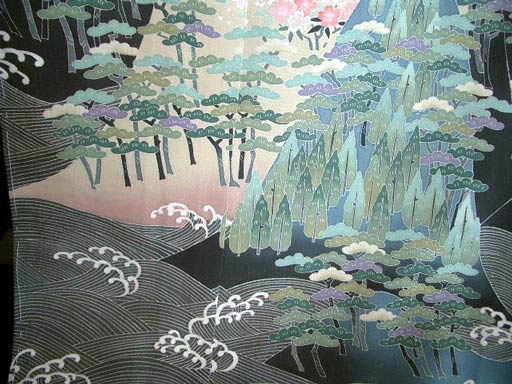 ◆ 波の細かな線や友禅の柄の縁取りも、とても細かな仕事ぶりです。