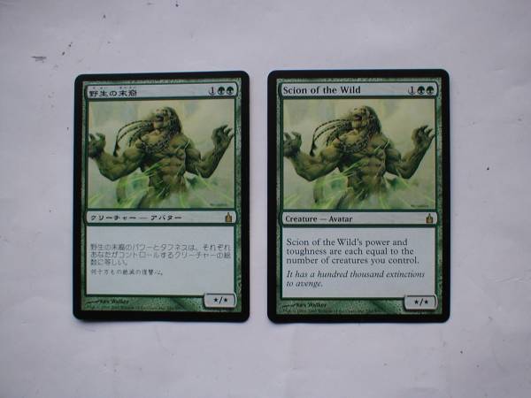 B知人の委託品です。 画像が全てです。 MTG 野生の末裔/Scion of the Wild 日本語3枚、英語1枚です。 何語だか分らない時があります。 エキスパンション、外国語(言葉)は画像で確認をお願いします。 カードはプレイしています。 プレイ後、カードはスリーブから出してストレンジボックスの中で保管していました。 カードに目立つ擦り傷、キズ、ペン跡のようなキズ、汚れ、角や端に傷、黒枠にキズ、などのキズが結構あります。 スリーブに入れないでストレンジボックスに保管してたので擦り傷が沢山あります。 カードからタバコや香水の匂いがします。 カードが大きく丸まっていたり反ってたりしています。 気が付かない部分がありますので程度を気にする方は入札をご遠慮下さい。 程度は下、ボロです。 コレクションには向きません。 何か起きた場合には自分では対応が出来ませんのでご理解頂ける方のみ入札をお願いします。 普通郵便、クロネコメール便で発送します。 郵便事故や郵便破損が起きた場合には保障できません。 ノ-クレーム、ノーリターンでお願いします。