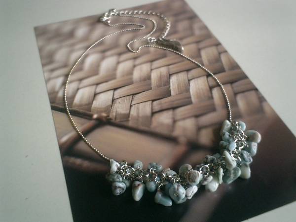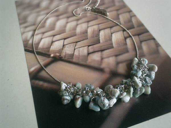 6月のクローゼット・・シリーズです♪やさしい雨・・爽やかなラリマーのネックレスです♪シックな水色にブラウンやブラックのお色が合わさったナチュラル感あふれるラリマーに華奢なボールチェーンを合わせて可憐な表情です♪ラリマーは5ミリから8ミリ位までのさざれです♪長さは54センチ+アジャスター12センチで最長66センチ位です♪お揃いのブレスレットも出品しています♪シンプルで合わせやすいデザインで作りました♪ハンドメイドをご理解頂いてノークレーム、ノーリターンでお願いします