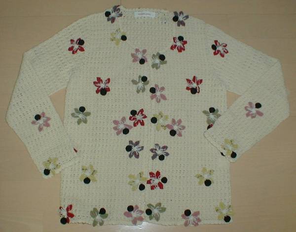 ワンダフルワールドのカーディガンです。きなり。毛100%です。和調(羽子板の羽?)のモチーフ付き。新品未着用。クレーム・返品は無しでお願い致します。他にも出品しています♪