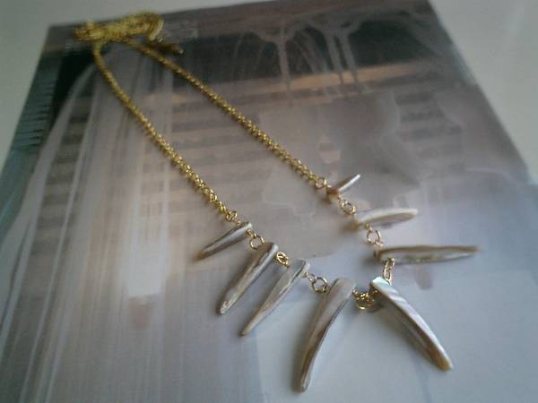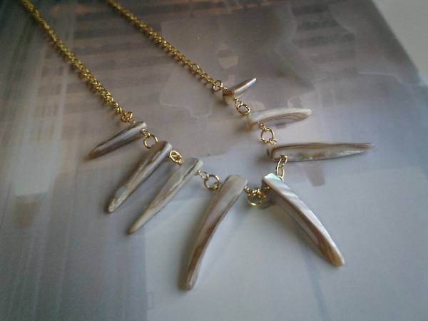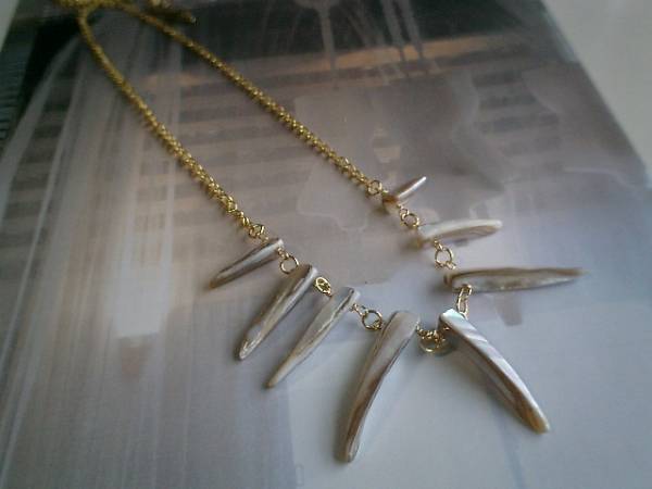 ノスタルジック・スタイル・・シリーズです♪♪秋のベージュ色・・シックなベージュ色のシェルのネックレスです♪個性的な円錐型のシェルは7×20ミリから8×40ミリ位のグラデーションです。長さは全長72センチ位で調節自由です♪チョーカー風にされても素敵です♪お揃いのネックレスやブレスレットも出品しています♪♪シンプルで飽きのこないいつまでも着けられるデザインを考えて作りました!ハンドメイドをご理解頂いてノークレーム、ノーリターンでお願いします