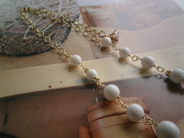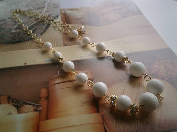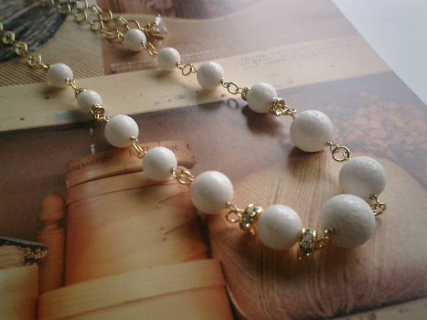 終わりのない夢・・シリーズです♪オートクチュールに憧れて・・気品のあるクラシカルなデザインのネックレスです♪♪やさしい表情の白のスポンジ珊瑚とジルコニアのロンデムを合わせて大人の表情のネックレスです♪スポンジ珊瑚は8ミリから14ミリ位までの丸玉のグラデーションです♪ジルコニアのロンデムは5ミリ、6ミリ、8ミリの大きさ違いです♪デザインチェーンを合わせてクラシカルにロマンチックしています♪長さは全長60センチ位で調節自由です♪チョーカー風に着けられても素敵です♪お揃いのブレスレットも出品しています♪ハンドメイドをご理解頂いてノークレーム、ノーリターンでお願いします