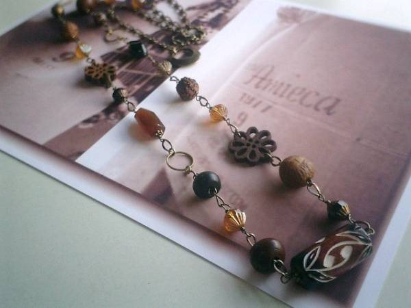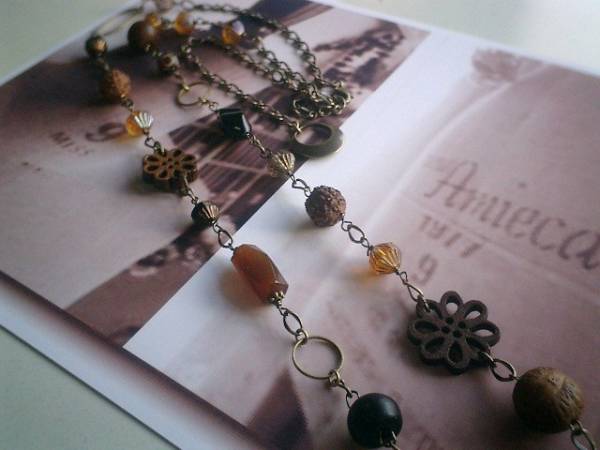 女の子シルエット・・シリーズです♪オリエンタル・モード・・彫りボーンや唯玉、菩提玉やチェコビーズや透かしウッドなどオリエンタルな素材を集めて異国情緒あふれるネックレスです♪お花の模様彫りのボーンは25×13ミリ位、お花の透かしウッドは16ミリ、20ミリの大きさ違いです♪長さは全長102センチ位で調節自由です♪2連にされても素敵です♪お揃いのブレスレットも出品しています♪シンプルで飽きのこないいつまでも着けられるデザインを考えて作りました!ハンドメイドをご理解頂いてノークレーム、ノーリターンでお願いします |
