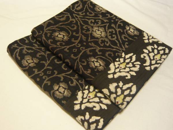 新品・未仕立て★京都西陣・小森織物本真綿袋帯★黒地に唐花文柄