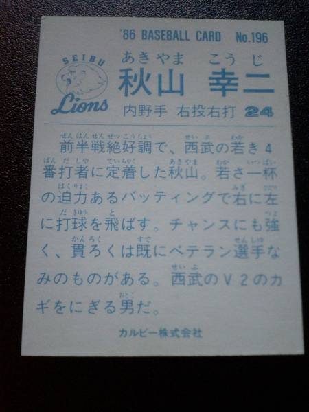 カルビー★ベースボールカード★86 秋山 西武 レア★196