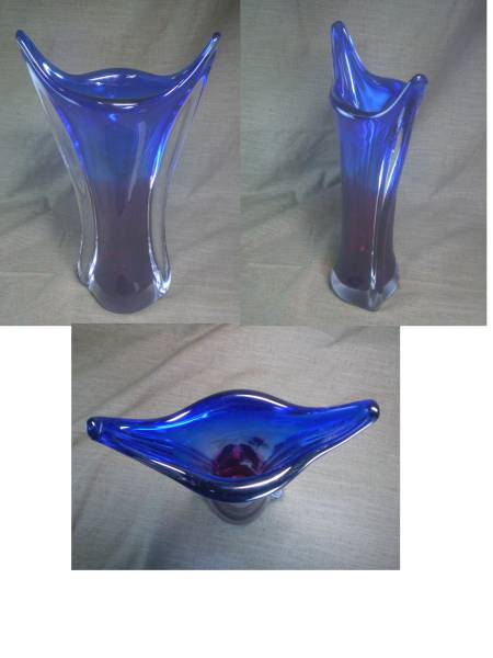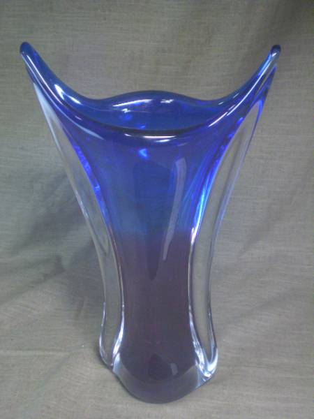 クリスタルグラス。箱なしで飾ってあった為、傷がすこしあります。変わった形の花器です。インテリアとして飾っても綺麗だと思います。