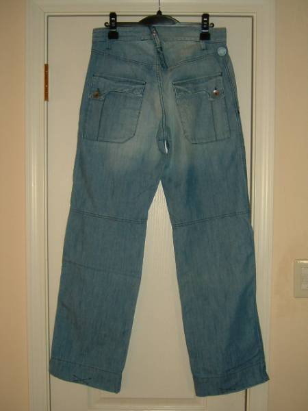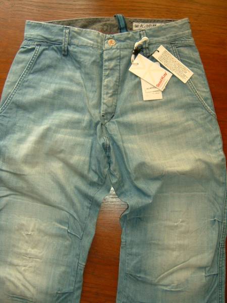 絶妙なシルエットや計算されたウォッシュ加工、膝部分の裏当てダメージ加工と大変に凝った作りのお品です。