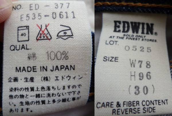 【日本製】EDWIN 0525 エドウィン  デニム ジーンズ 30