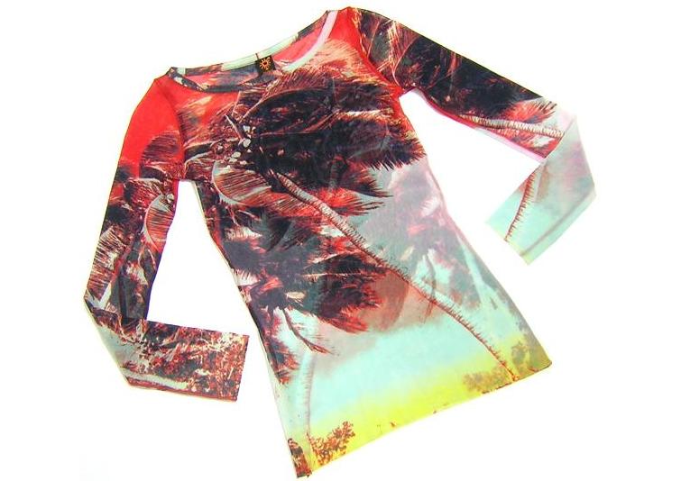 Jean Paul GAULTIER SOLEIL のイタリア製、 プリントチュールカットソーでございます。 伸縮性あり/透け感あり | |