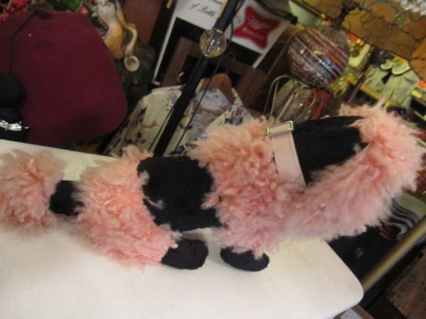 ★1950年代アメリカのプードルぬいぐるみになります。  とても品のある姿です。  ここまで良く出来ているプードルは珍しいかと思います。  ピンクとブラックのバランスもまさにフィフティーズですね!  高さ24cm、横幅30cmのサイズです。  ビンテージにご理解ある方、よろしくお願いします。